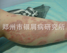 发病过程: 高三学年奋战高考,由于各方面压力大,偶然发现皮肤上出现一个个点滴状红疹,伴有瘙痒,经过短期外用药治疗后,红疹逐渐消退。到了冬天,由于一次发烧引起复发,病情发展迅速,短期内片状分布的红疹发展成大块,并覆盖鳞屑。为了不耽误学习,也没经过系统的治疗,高考结束后,尝试的治疗也都没有多大效果。 父母经过多方询问,得知我院在牛皮癣的治疗方面很有经验,于是先在我院网站上进行了咨询与医生预约,随后来我院门诊就诊。 治疗概述: 经过我院刘长江医生医生的一番检查,发现小陈的腿部的红疹斑块比较严重,有炎症,且斑块边界处有许多新生的点疹。在对患者进行了详细的询问后得知,患者学习压力大,变得自卑,不愿与人接触,作息饮食都很不规律,导致内分泌失调,使得微循环呈现异常。 根据患者的病情以及身体状况,刘长江医生给她制定了一套个性化治疗法案,采用中医为主的治疗方法,调理脏腑功能的同时强化身体免疫机能,使身体内部毒素得到祛除,从病源治疗破损,配合外部物化治疗和食疗调理进行整体有序的康复治疗。 在患者的积极配合下,患者的病情出现明显好转,身上的斑块开始慢慢消退。患者腿部的鳞屑消除,皮损恢复很好,仅在患病部位留下一些色素沉淀斑。刘长江医生为她制定了巩固方案,使前期治疗得到强化巩固,调节免疫功能,起到抵抗复发的效果。 |