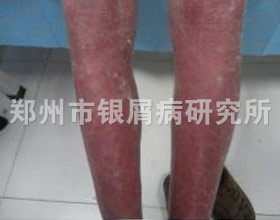发病过程: 患者尚某患银屑病十多年,家里除了他,他的父亲以及伯父都患有此病,系遗传。接受过各种方式的治疗,皮损不见明显消退、一度尝试偏方,致病情加速恶化,全身大面积泛发潮红斑块,痛痒难耐。 由于生活环境潮湿阴暗,加上护理不当,导致尚某腿部发生关节病变,加上皮损鳞屑不断脱落,情况十分危急。在当地医院接受一段时间的治疗,没有明显效果,放弃治疗。长期靠西药膏剂维持,全身的红皮成了他最大的痛。 治疗概述: 医生经过检测,断定尚某为关节病型银屑病与红皮病型银屑病并发,属于危重患者。随后组织医生组进行会诊,确定详细的治疗方案。首先对尚某进行全面的身体检测,包括皮屑检测、微循环、免疫功能以及关节检测,结合各项数据,展开针对性的全方位康复治疗。 治疗全程非激素,中西医结合。针对其关节病变采用中医手段,通过中药成分疏通经络,活血化瘀、祛风散寒、豁炎消肿,改善微循环、增强骨后随后展开皮损治疗,不仅在消除皮损,还建立起机体的抗复发机制,杜绝银屑病的复发。 治疗后,尚某的病情康复,经过愈后跟踪,各项指标均良好,未出现任何复发迹象。 |