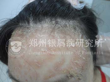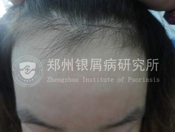 病状诊断: 寻常型点片状银屑病(进展期) 康复过程:患者的主治医生为患者陈某制定了详细的个人治疗方案:局部皮损采用311窄谱治疗,配合中药配方药浴,并使用处方中药剂。 311窄谱光照与药浴配合治疗一个疗程后,患者头部原来严重的皮损全部消失,只留有小块色素沉淀斑。 巩固治疗后,色素沉淀斑也消失,皮肤完全恢复光滑健康。 |