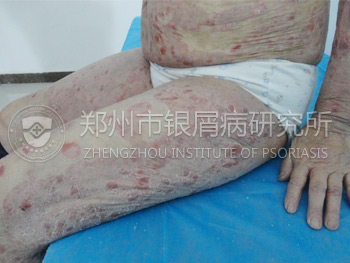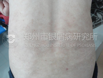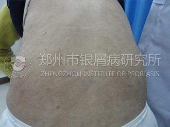 患者病史:患者全身出现皮损伴有鳞屑5年余,加重1月余。曾口服自配中药丸,中药胶囊,外用自制药水,药膏,疗效不明显,反复发作,今来我院就诊。 病状诊断: 红皮病型银屑病(进展期) 1、检查:既往史:高血压;家族史:无;药物过敏史:无。检查:元素锌4.34,常规lymph18.3 ,gran77.9 ,hct 36.9 ,mcv 101.6,mch35.7;循环中度异常。 2、病症:患者全身泛发片状皮损,有银白色的鳞屑及薄膜现象。颈部,前胸,双肘,腹部,背部,双下肢有较多片状皮损伴鳞屑。并伴有新出红色点滴状皮损。 康复过程:主治医生安排患者住院接受系统治疗。主要采用中药熏蒸与中药剂经方,外用癣药膏擦拭。 治疗后,患者四肢的皮损留有色素沉淀斑,腹部及背部的皮损逐渐褪去,没有皮损突发或反复迹象。医生对患者进行治疗方案调整,减少复方氨肽素服用量,继续使用癣药膏擦拭四肢。 患者原先较为严重的背部及腹部皮损褪去,小块色素沉淀斑。继续进行巩固治疗。 患者再次接受皮肤检测,指标恢复健康状态,没有复发迹象。 |
