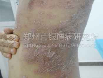 患者病史:患者头皮出现皮损伴有鳞屑1年余,加重5天。曾口服自配西药,银朵兰,消风止痒颗粒,中药饮剂,外用宝龙康(酮康唑),疗效不明显,反复发作,今来我院就诊。 病状诊断: 脓疱病型银屑病(进展期) 1、检查:既往史:无;家族史:无;药物过敏史:无;元素锌4.69;常规hct36.7;循环轻度异常。 2、病症:患者全身泛发片状脓疱型皮损,有银白色的鳞屑及薄膜现象。耳内,前胸,腹部,背部,下肢有较多片状皮损伴鳞屑。并伴有新出红色点滴状脓疱型皮损。 康复过程: 主治医生为小患者制定了个人治疗方案,治疗第一阶段主要使用红光治疗和熏蒸,初次诊疗使用双黄连粉针1支,配合输液。小患者的皮损很快得到控制不再扩散,患处瘙痒疼痛感减轻。 主治医生根据小患者的皮损恢复状况,微调治疗方案,采用药浴治疗,配合中药外用药剂。 经过治疗后,小患者的皮损消褪,皮肤恢复光滑。 |