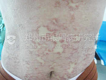 患者病史:皮损伴瘙痒8年左右,曾在小医院口服西药,打针,中药,外抹丙酸氯倍他素乳膏,维A酸,穴位注射,口服转移因子口服液,银屑灵。 病状诊断:寻常型银屑病(进展期) 1、检查:家族史:无;过敏史; 无;血常规:基本正常;微量元素:锌下降4.36mg/l(4.5——13.8);微循环:中度异常。 2、病症:经检查皮损属于进展期,有可能前期治疗皮损会加重,甚至全身发出,疗程长短主要看病人体质病情发展,以上情况已告知本人及家属,均表示理解并同意治疗。全身散在点滴状皮损伴少数鳞屑。 康复过程:主治医生为患者安排住院治疗,检测数据分析并确诊后,第一阶段治疗采用负离子仪器频率治疗,内服经方消银汤2号。 第一阶段治疗后患者完全控患者的皮损扩散,瘙痒感减轻,四肢皮损明显消褪,腹部及背部皮损逐渐消褪。第二阶段,主治医生调整治疗方案,增加中药外用洗剂,使用311窄谱仪器治疗局部皮损。 第二阶段治疗结束后,患者的皮损明显褪去,皮肤逐渐恢复正常,主治医生要求继续使用311窄谱光疗治疗局部皮损,继续使用中药外用洗剂。皮损逐渐消失,没有留下色素沉淀斑。 1月6日,巩固治疗周期结束,患者的皮肤恢复,再次检测显示微循环及免疫功能正常。 |