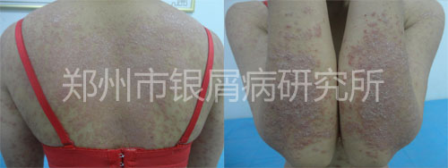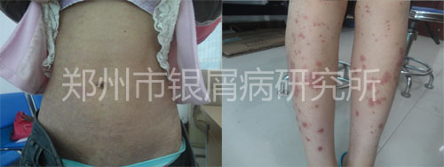 后来小霞的丈夫在一则新闻上看到郑州市银屑病研究所是治疗银屑病的专科医院,而且好多银屑病患者都是在这里治好的。于是,他们怀着半信半疑地心态来到郑州市银屑病研究所,经银屑病医生检查,全身散在点片状皮损伴鳞屑,以头部、四肢皮损较重,多处新出红色点状皮损。病情处于急性发展期,近期有加重情况,不过医生说这是正常现象。